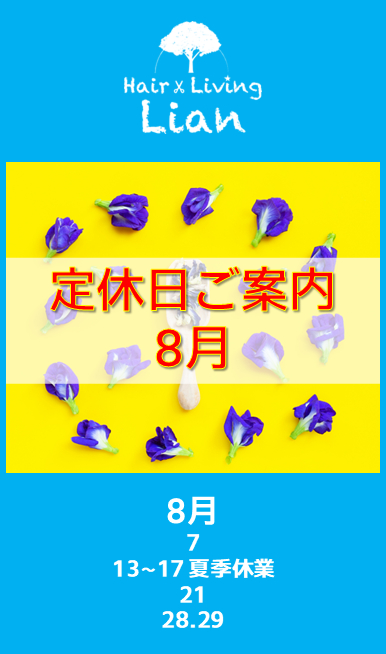 7月・8月の定休日ご案内