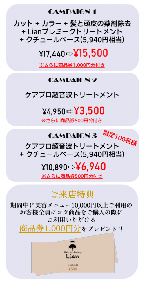 駒ヶ根の美容室HAIR×Living Lian(リアン)から